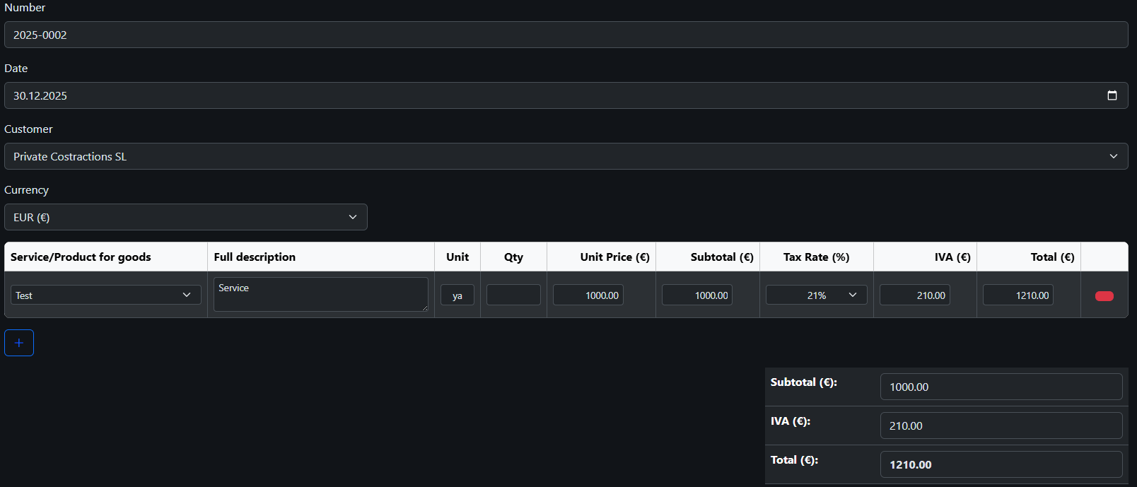 2️⃣ Invoice to a Client in Spain