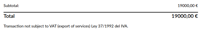 3. Invoice a client from the USA for €19,000 → IVA 0% (our ROI registration does not matter in this case), also shown in the invoice.