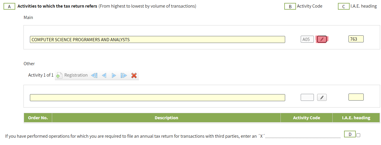- Page 2. Select your Activities from Modelo 036