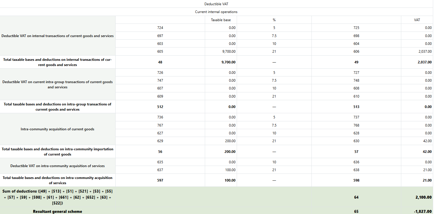 3️⃣ Step – Review VAT taxable bases and deductions.