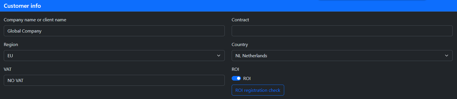 To understand how to calculate IVA, let's look at the following tables. They show how your ROI registration and the client type affect the tax applied.