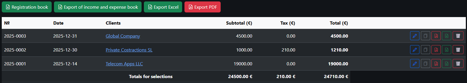 2. Invoice a client from Spain for €1,000 → IVA 21%, automatically indicated in the invoice.