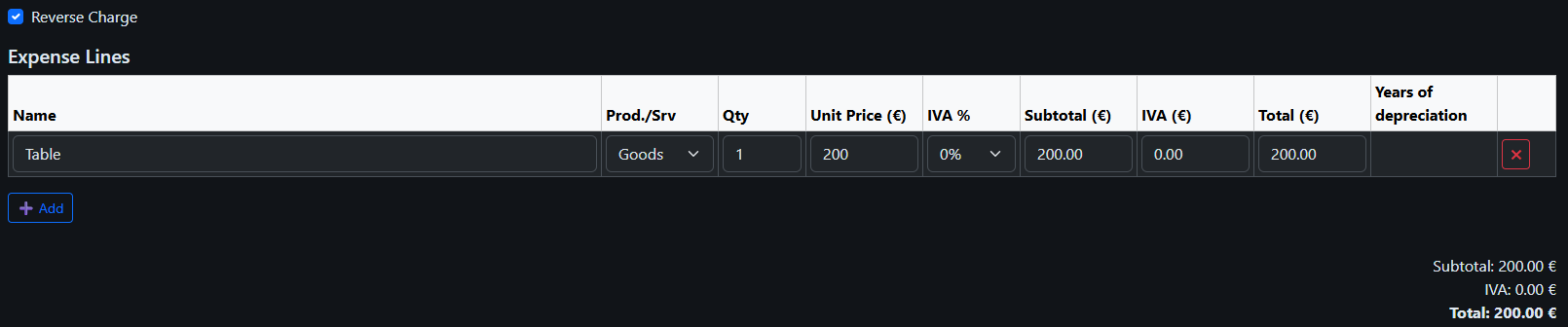 2. You purchased a desk from a supplier in the Netherlands for 200 euro. Your autonomo is registered in ROI, and the supplier is also registered in ROI and issued an invoice with Reverse Charge.
