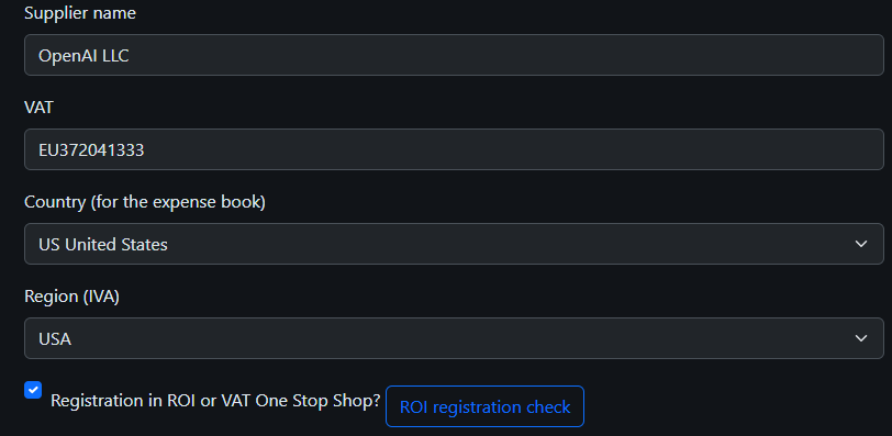 4. If either you or the supplier is not registered in the ROI and the invoice does not include Reverse Charge, the supplier charges VAT (21% in Spain). You can fully expense the cost including VAT. In the declaration, this operation is reflected in the standard VAT lines.