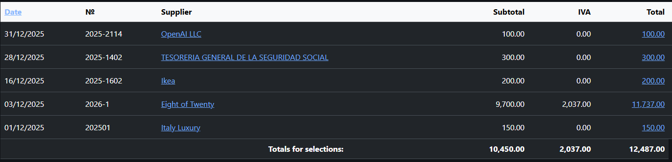 Now let’s analyse purchases. In the same way as with sales, we will determine how invoices are received and how IVA is applied in each case.