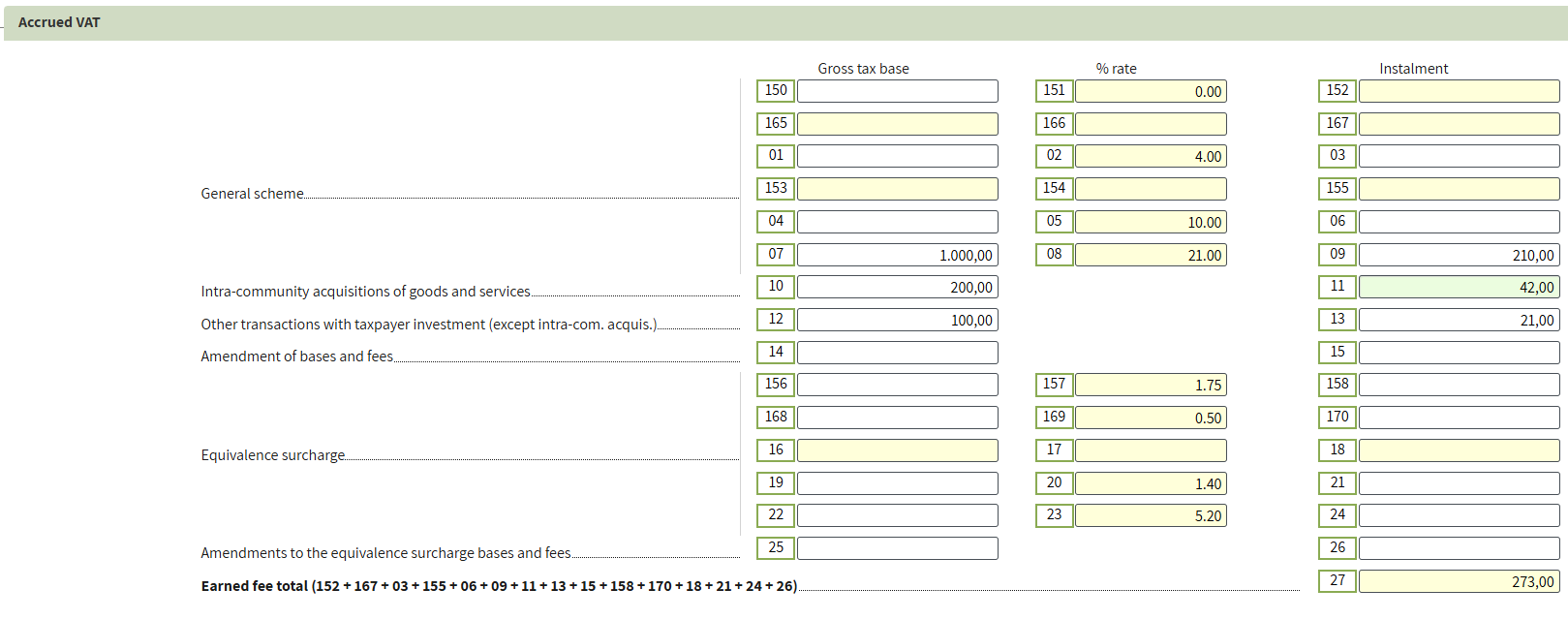 Go to page 2 and fill in the data from your prepared declaration in the Accrued VAT section.