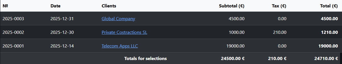 Check all invoices issued to EU clients. For example, an invoice to a client in the Netherlands for €4,500.