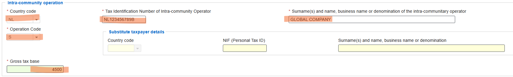 - Clave S – Intra-community provision of services by the declarant.