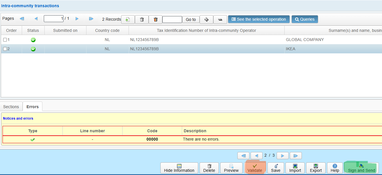 Review all data carefully. Add or edit entries if necessary. Save the declaration.