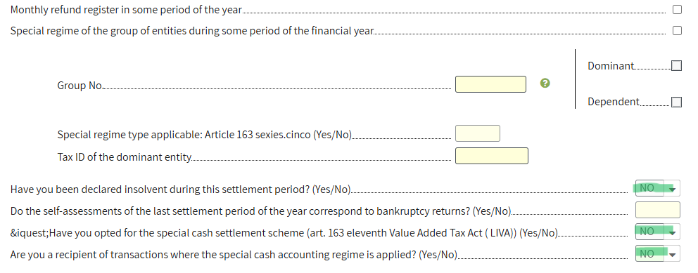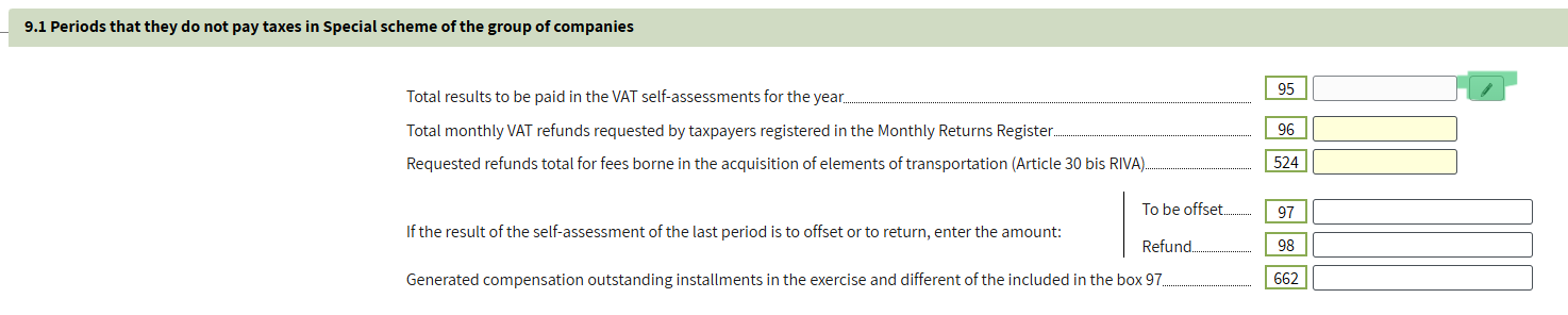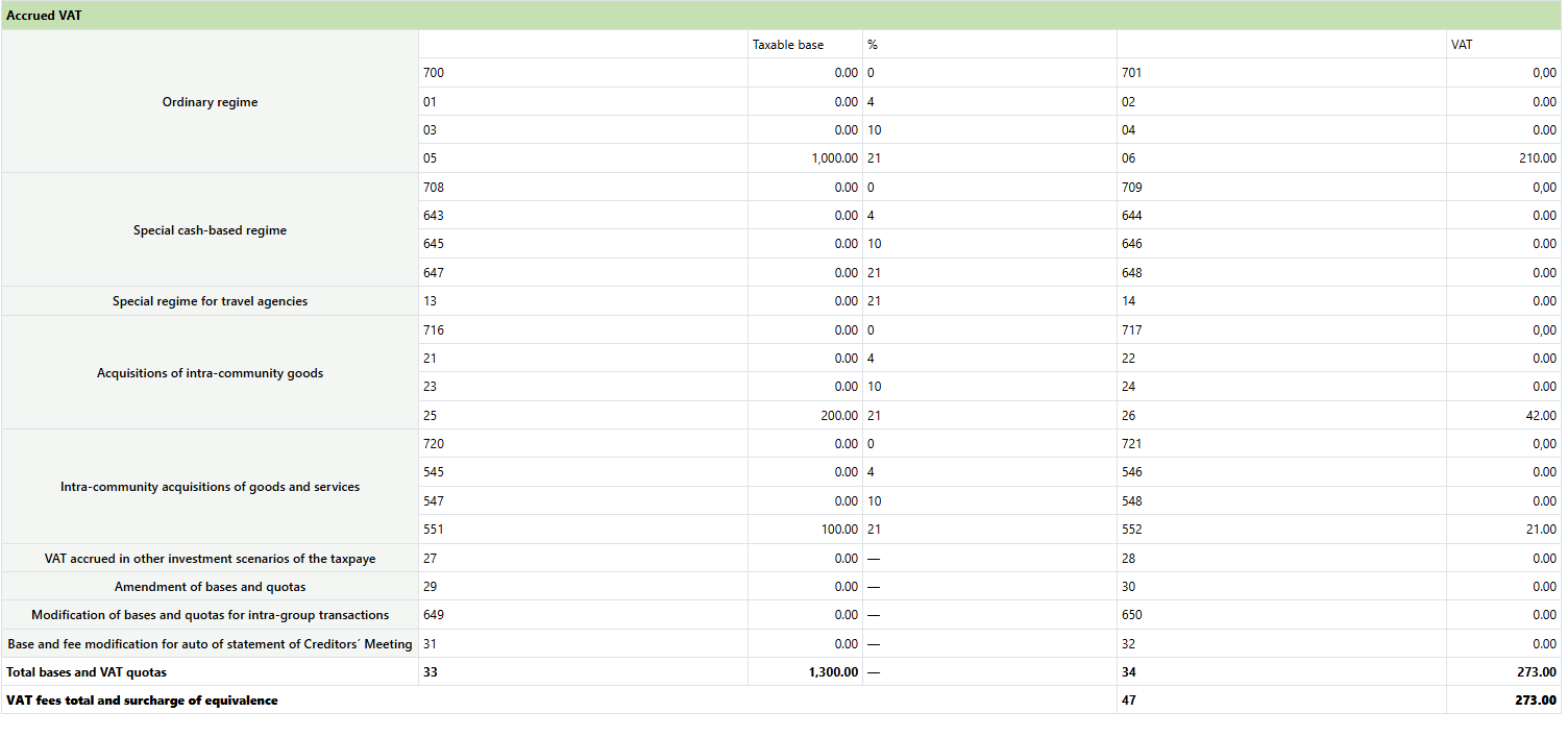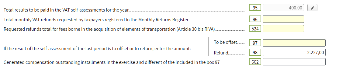 - If there was a payment in the quarterly declarations (modelo 303), for example, 400 euros for the first quarter, we will indicate the amount. The amount is reported in the last month of the quarter.