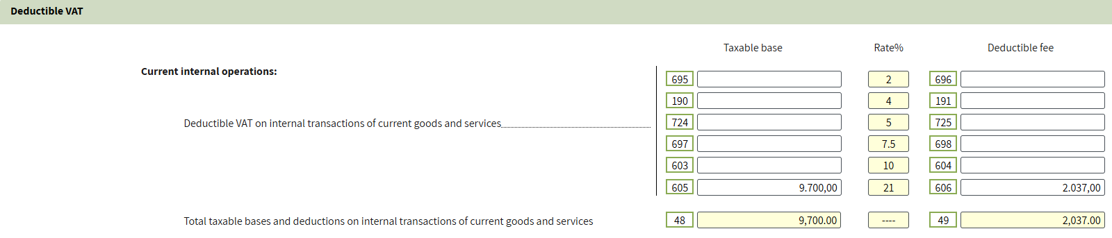 3️⃣ Step – Review VAT taxable bases and deductions.